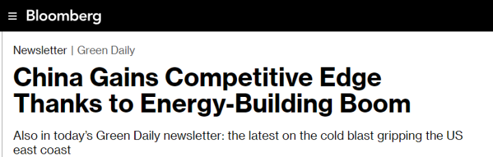 美国彭博社网站28日发表题为《中国凭借能源建设热潮获得竞争优势》的文章云燚网。