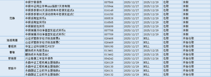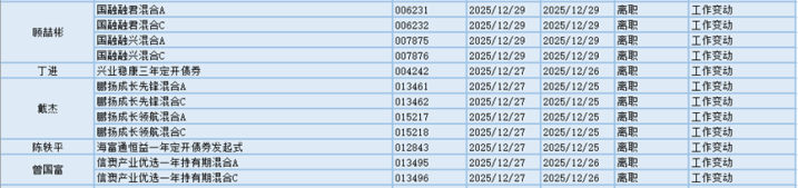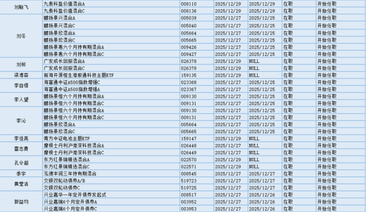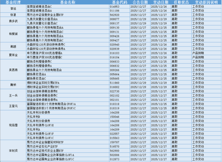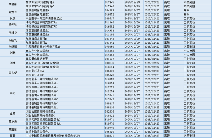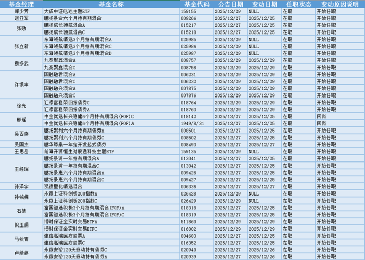 基金经理是一只基金产品最核心的成员,能决定一只基金的投资方向、投资策略以及投资风格,基金经理出色的择时选股能力和调研预测能力是基金业绩的有力保证,所以基金经理是投资者在选择基金产品时的重要参考依据。基金经理的变动很大程度上会影响到基金产品未来的表现,是一个需要特别关注的信息。12.27-12.29日共有63位基金经理发生任职变动。