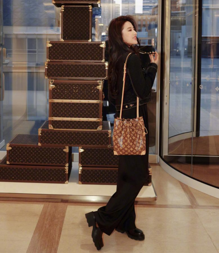 在鞋子搭配上,刘亦菲搭配了一双黑色粗跟鞋,让她看起来松弛感满满!搭配棕色老花水桶包,好气质藏不住!